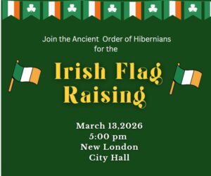March 13, 2026 Join the Ancient Order of Hibernian at the New london City Hall for the Irish Flag Raising...